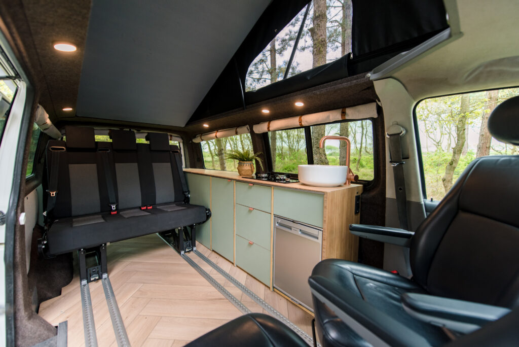 Gebouwd op het vertrouwde Volkswagen chassis, maar dan 40 cm langer. Hierdoor heb je binnenin wat meer bergruimte, zonder in te leveren op de strakke uitstraling van het interieur. De mooie hoekbank creëert een ruime en comfortabele zit achter in de bus, met daaronder veel bergruimte. Deze bank is ideaal voor wie alleen of met z’n tweeën kampeert. Met een bank op rail maak je er juist een 5 persoons camper van. Beide banken zijn moeiteloos om te bouwen tot een groot bed voor een goede nachtrust. Daarnaast zorgen de grote ramen rondom voor een ruimtelijk gevoel. Het exterieur behoudt de herkenbare uitstraling van de Woodpecker, die je met accesoires kunt aanpassen naar jouw avontuur.